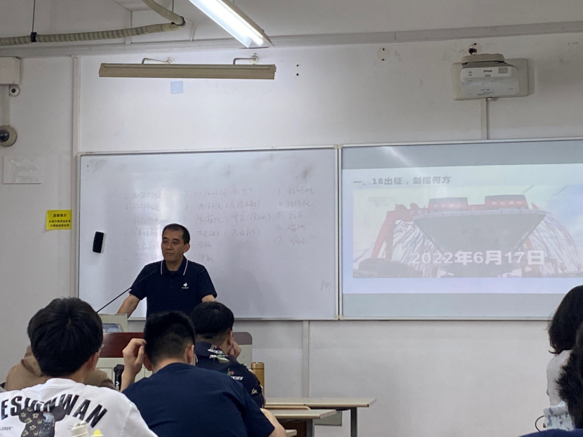 谢部长长期致力于造船质量管理理论与实战的结合,见证了中国建造航空母舰、豪华邮轮、大型LNG运输船的发展历程,对材料检验和质量管理的独到见解和深刻理解,融汇在个人亲身实践的工程案例中,为同学们分享了来自工程一线的质量教学案例和爱国思政教育。