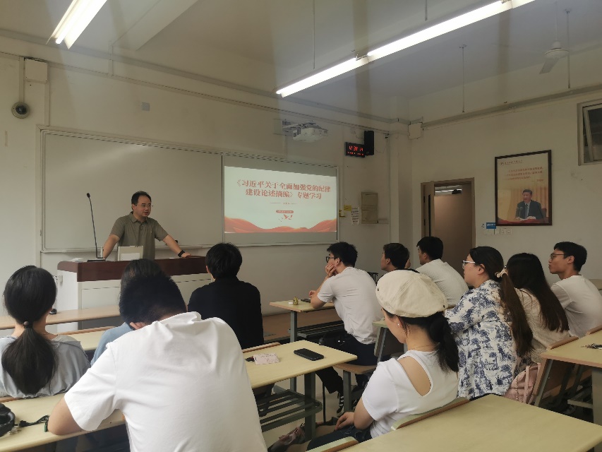 李文尧老师首先结合时事案例对党的纪律进行了深入解读,并结合新时代党的建设发展内容,强调作为党员,必须始终保持高度纪律性,严格遵守党的各项纪律规定,保持警醒、自律,在实践中坚定前行。