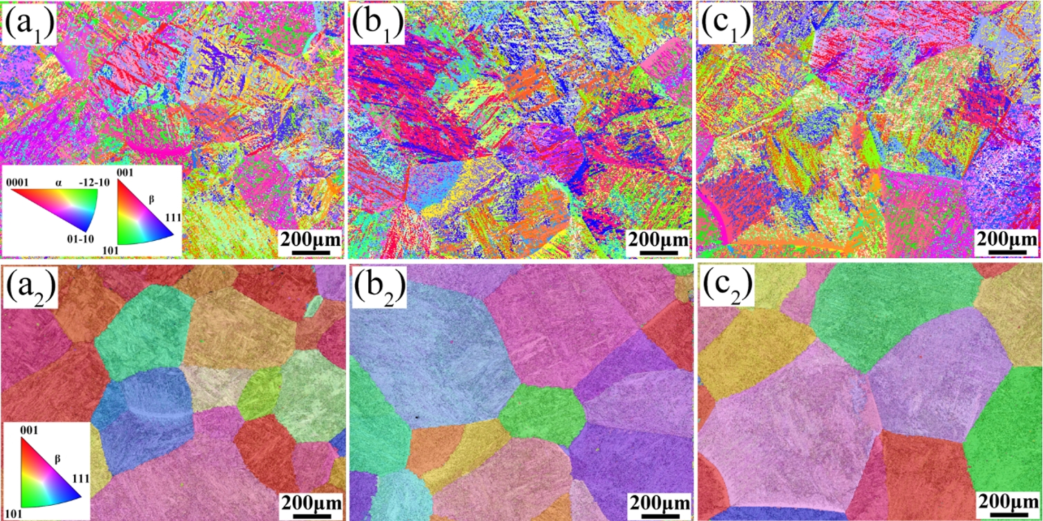 不同热输入条件下TC4合金焊缝晶粒重构前后的EBSD反极图