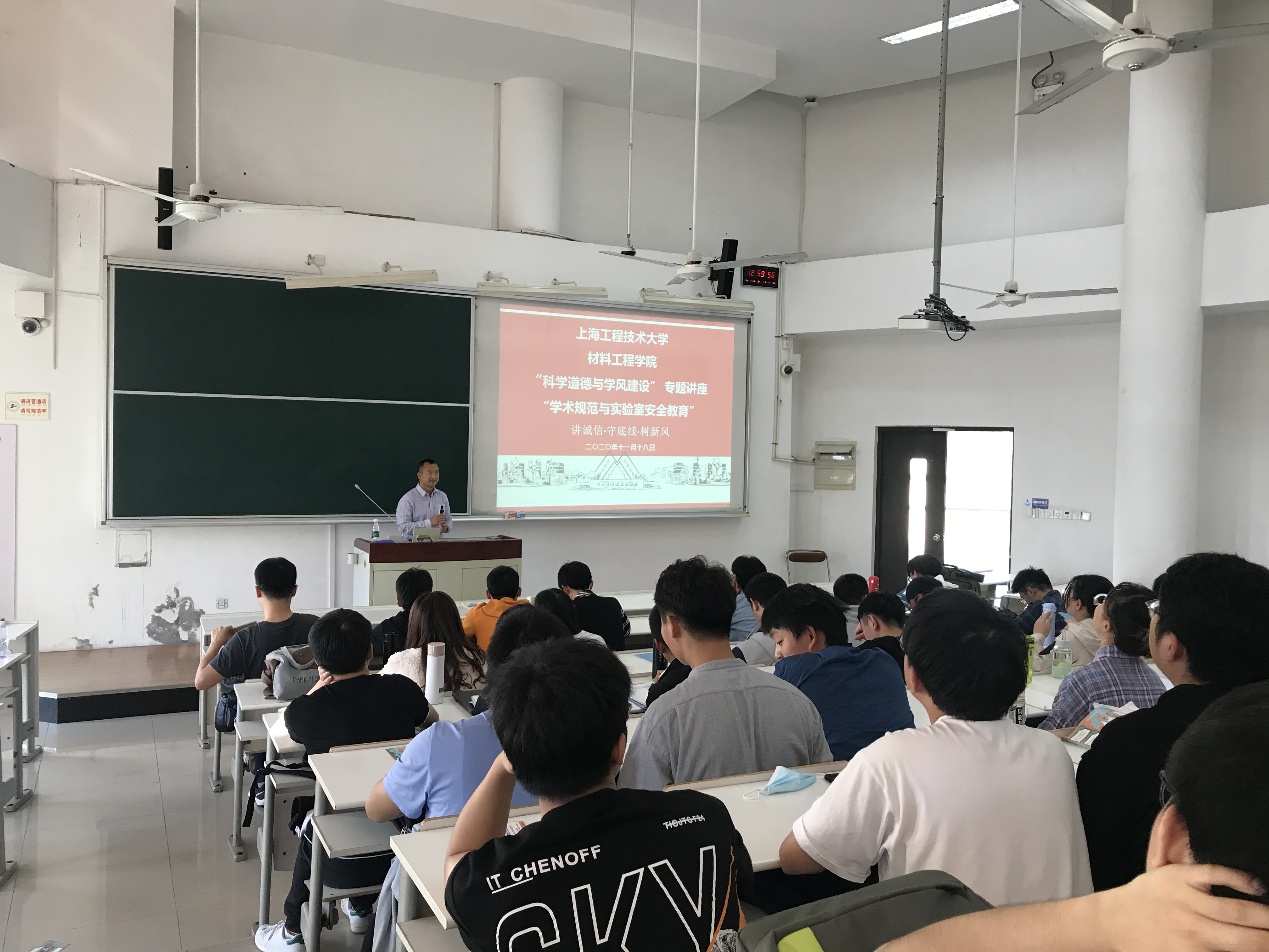 为深入贯彻落实习近平新时代中国特色社会主义思想、党的十九届五中全会精神和“科技三会”精神,学习习近平总书记关于科学道德和学风建设的重要指示精神,11月18日下午,材料工程公司在教学楼J303举办了“科学道德与学风建设”专题讲座。本次讲座邀请了公司分管科研和研究生的副经理董万鹏老师以“学术规范与实验室安全”为题,为公司2020级全体研究生新生上了深刻而富有教育意义的一课。