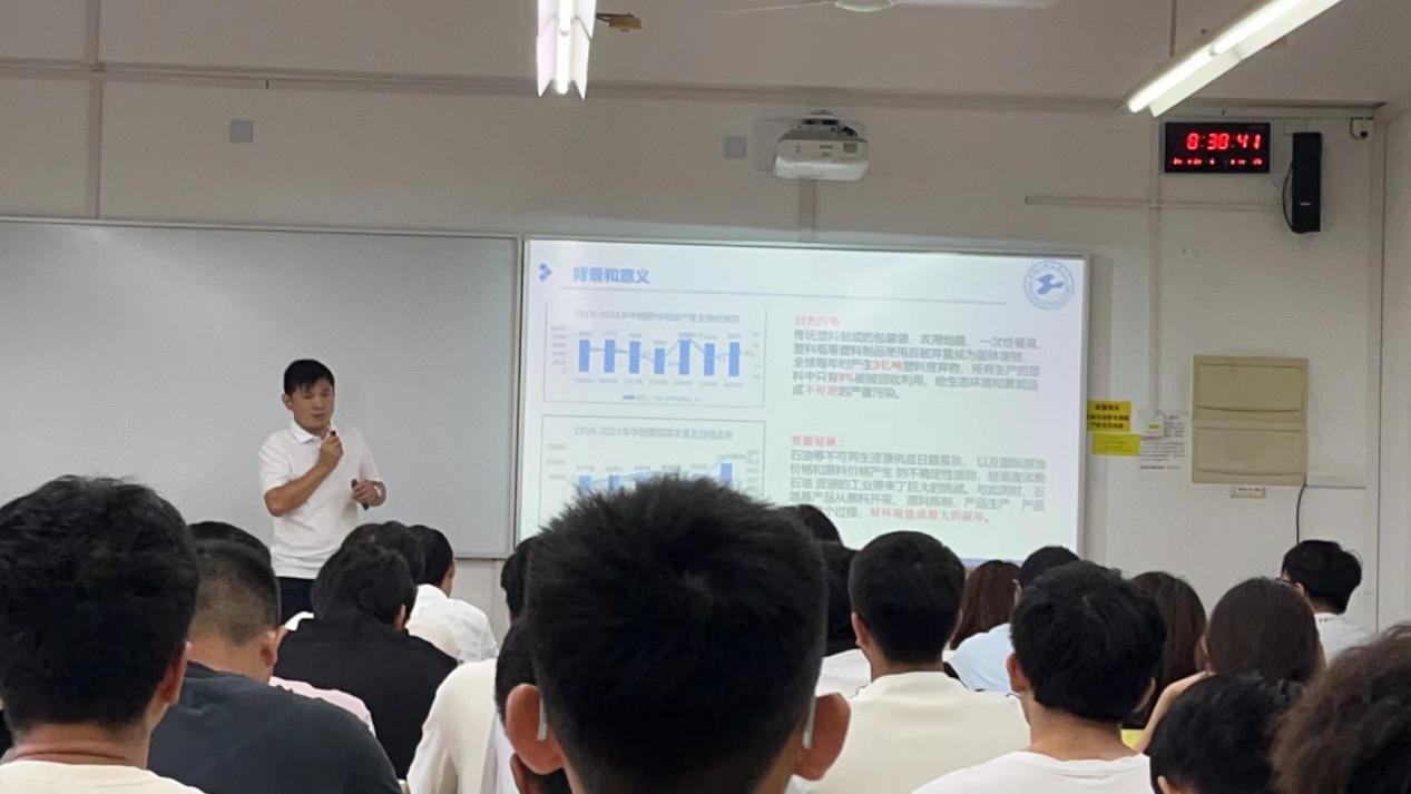 课程结束前,熊总提出三个问题:塑料污染对人类未来生活会带来哪些灾害?塑料相关企业如何应对未来的挑战?生物降解材料能代替哪些传统塑料产品?供同学们思考和讨论。同学们积极参与讨论。
