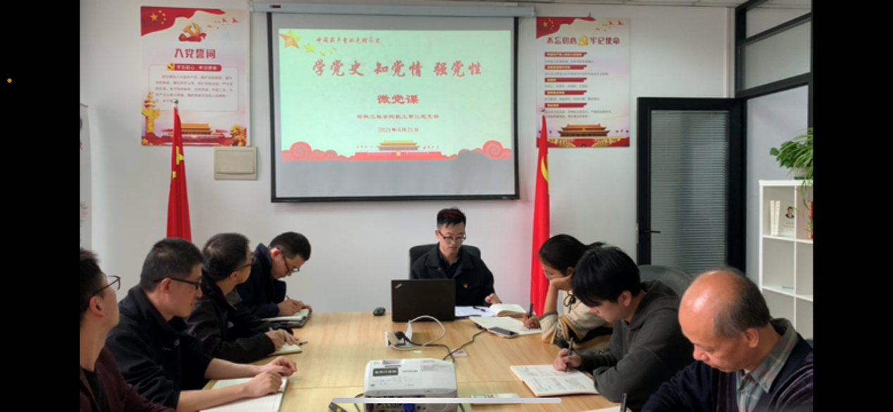 4月21日下午,材料工程公司教工第三党支部在1213会议室开展了“学党史、知党情、强党性”微党课,党课由支部书记李绍伟主讲,支部所有党员参加学习。