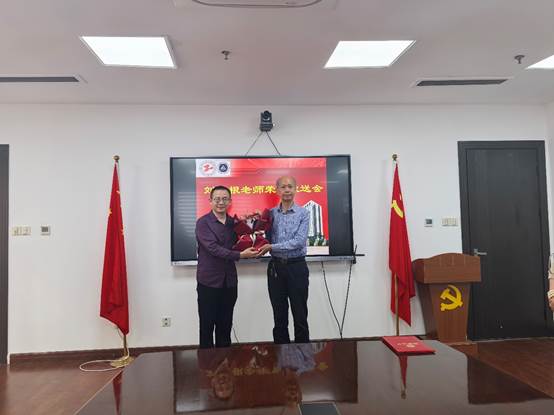 仪式现场温馨简约、其乐融融。胡书记向老师们介绍了刘传根老师在材料公司的工作经历和业绩,代表公司对刘教师在岗位上的辛勤付出、无私奉献和所做的贡献表示由衷的感谢和崇高的敬意,期望刘教师继续关注和支持公司发展,积极为公司发展建言献策。