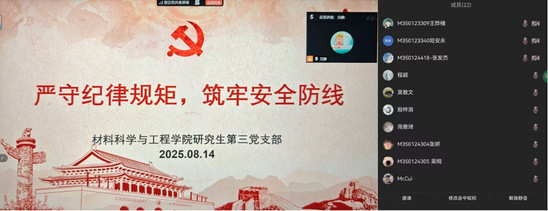 为深入贯彻中央八项规定精神学习教育,进一步增强师生党员的总体国家安全观,守好政治纪律,自觉锤炼党性,2党委于8月5日-15日通过党委理论学习中心组学习会和党支部“三会一课”、主题党日等形式开展以“严守纪律规矩,筑牢安全防线”为主题的专题学习。