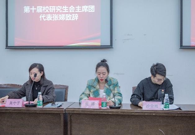 校第十届研究生会主席团代表张娣代表校研究生会对公司研究生代表大会表示支持和关注,并建议研究生会应进一步深化理论学习,在工作中始终保持生机勃发的态度,打造有凝聚力的员工组织。