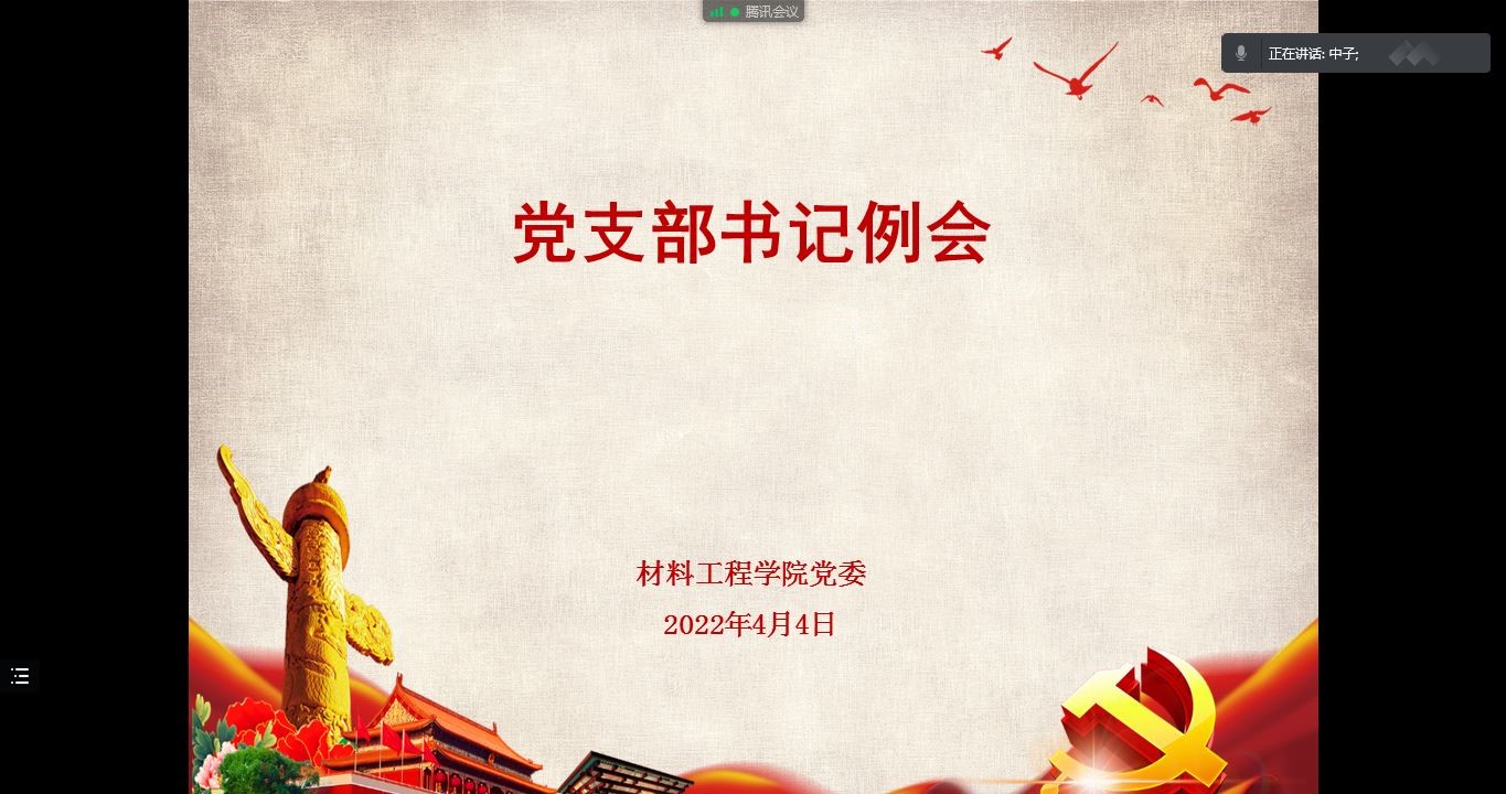 4月4日下午,材料工程公司党委在线举行党支部书记工作例会,重点传达和部署近期疫情防控工作精神。公司党委书记张朝民,党委副书记、经理周细应,党委副书记黄中子、党委组织员和全体党支部书记参加会议。会议由公司党委书记张朝民主持。